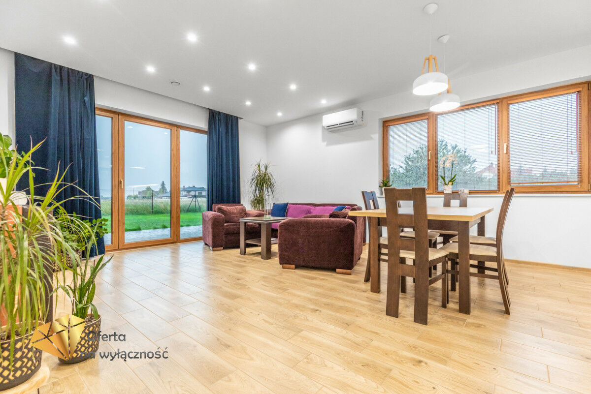 Na sprzedaż nowoczesny i funkcjonalny dom parterowy o powierzchni całkowitej 175 m2 (użytkowa 99 m2 z projektu N4G2) usytuowany na działce o powierzchni 900 m² w cichej i spokojnej okolicy z dogodnym dojazdem.
