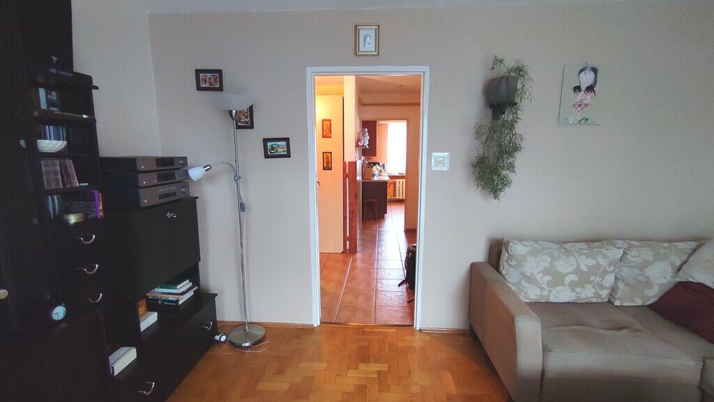 Salon połączony jest z dużym balkonem. Mieszkanie wymaga pewnych