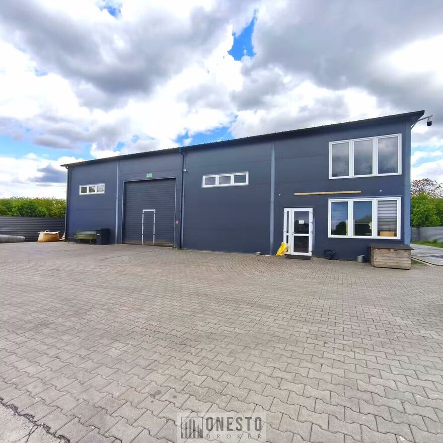 Hala wykonana z płyt warstwowych o gr. 10 cm, posadzka z betonu utwardzonego zbrojonego B-25, częściowo, dodatkowo oświetlona zewnętrznie, wyposażona w monitoring, dwie bramy z dwóch stron hali, okna PCV, wszystkie pomieszczenia zadbane.
